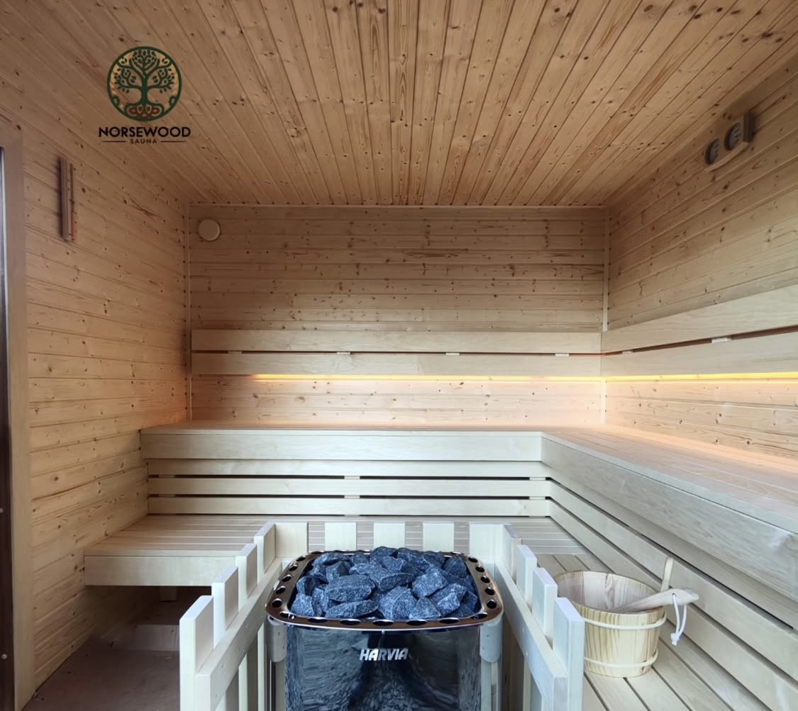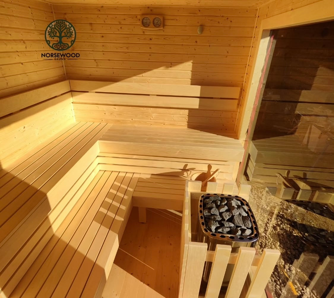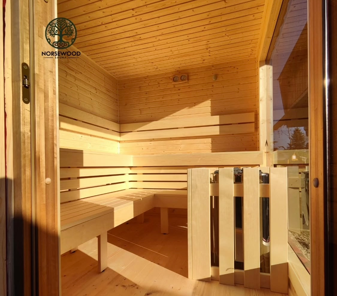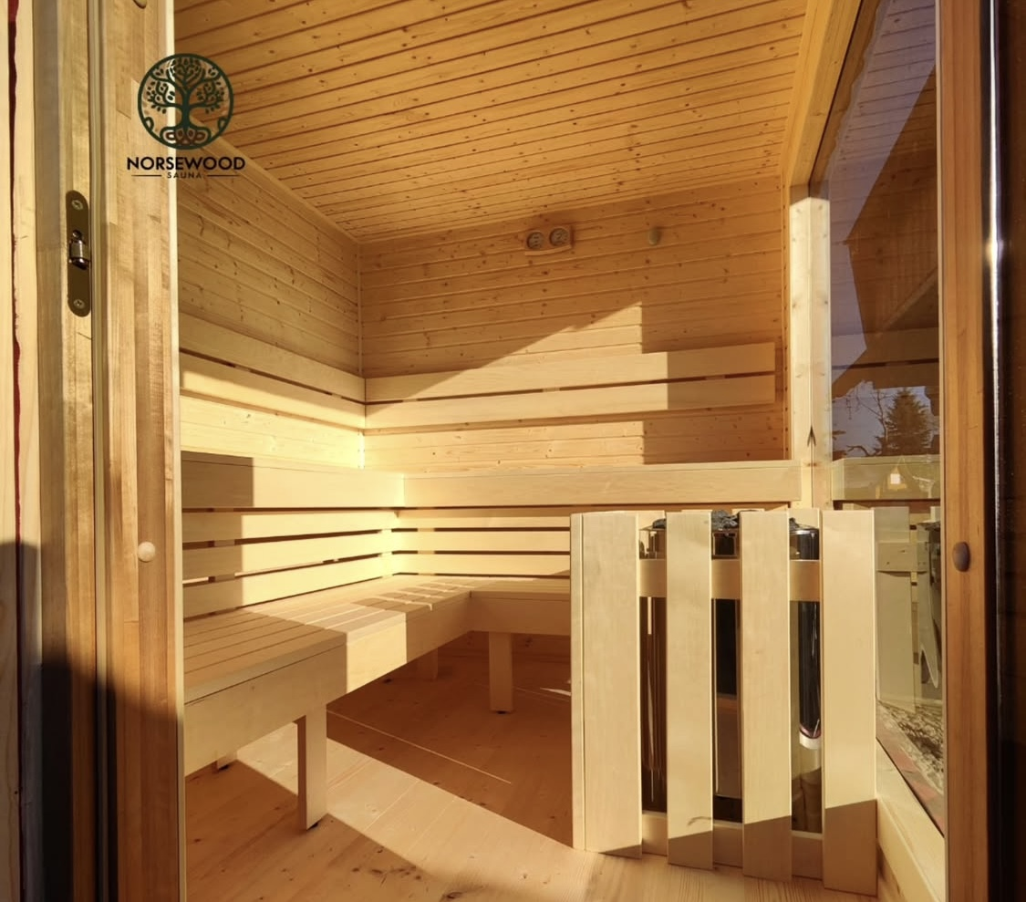 Vonkajšia sauna z prírodného dreva, jemné teplo, ktoré ťa obklopí už od prvých sekúnd.